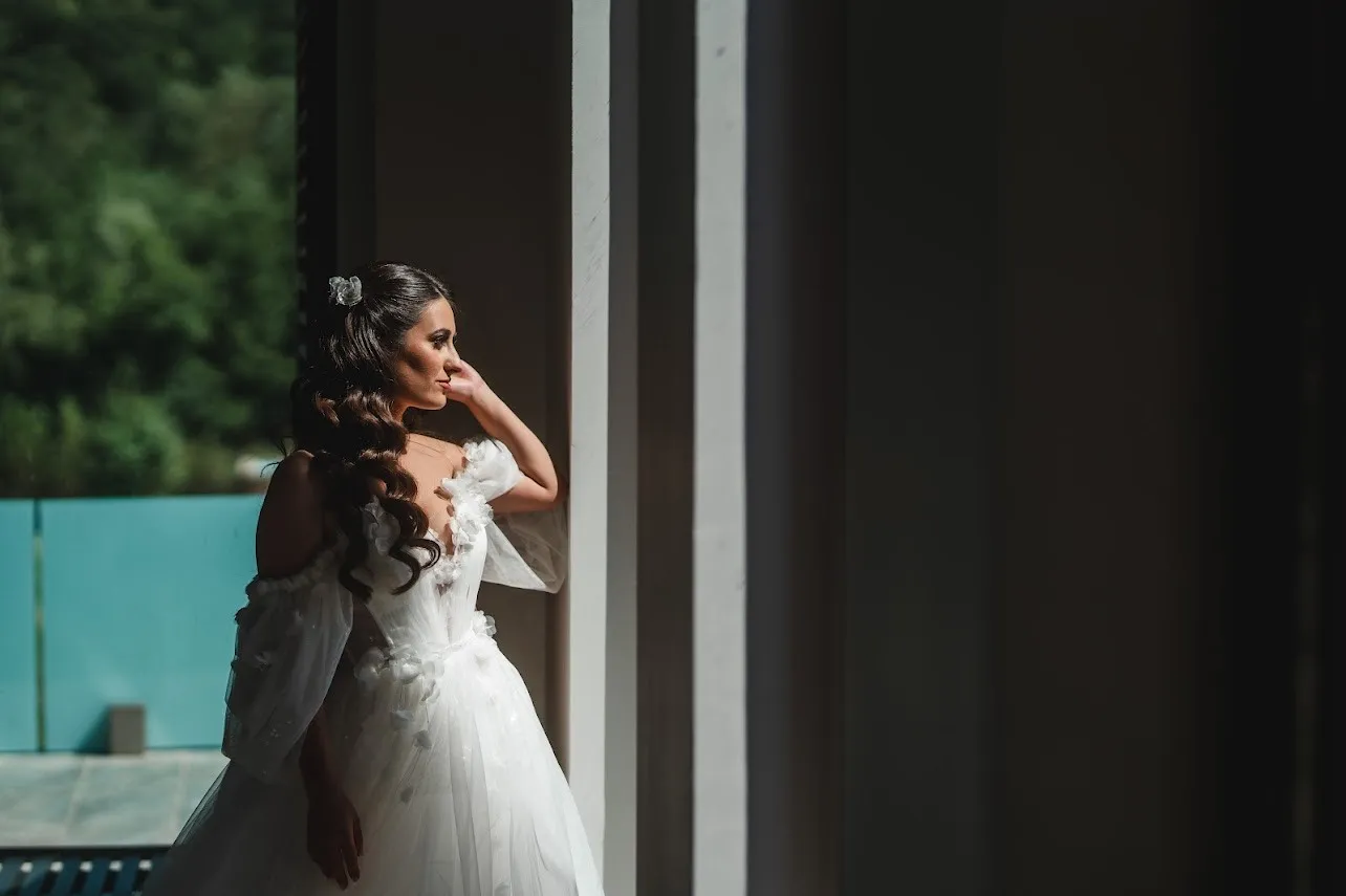 Мъжка бутониера/аксесоар за костюм с бяло цвете и шел перли