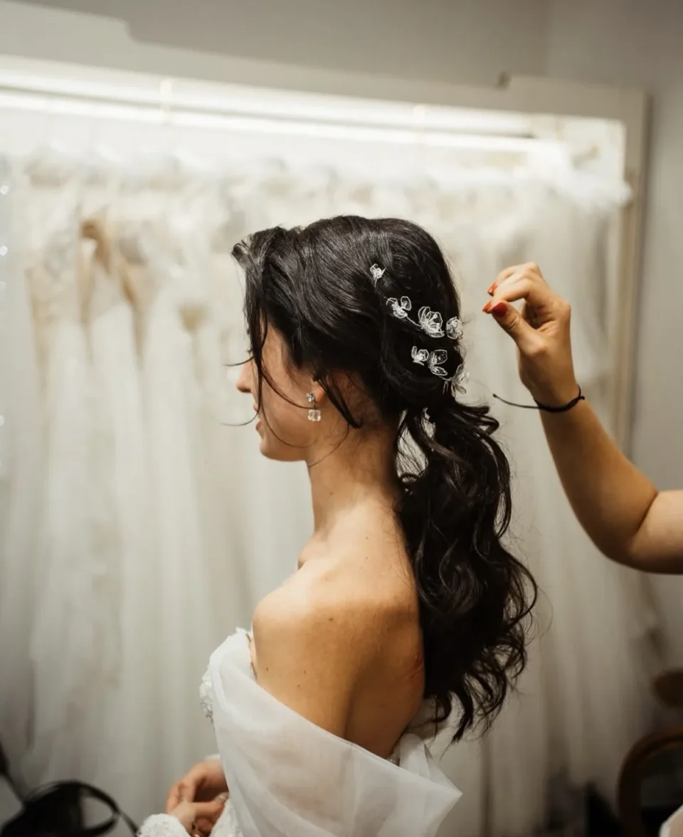 Аксесоар за коса „Leaves“ с кристални листа, матов финиш и листовидни цирконии