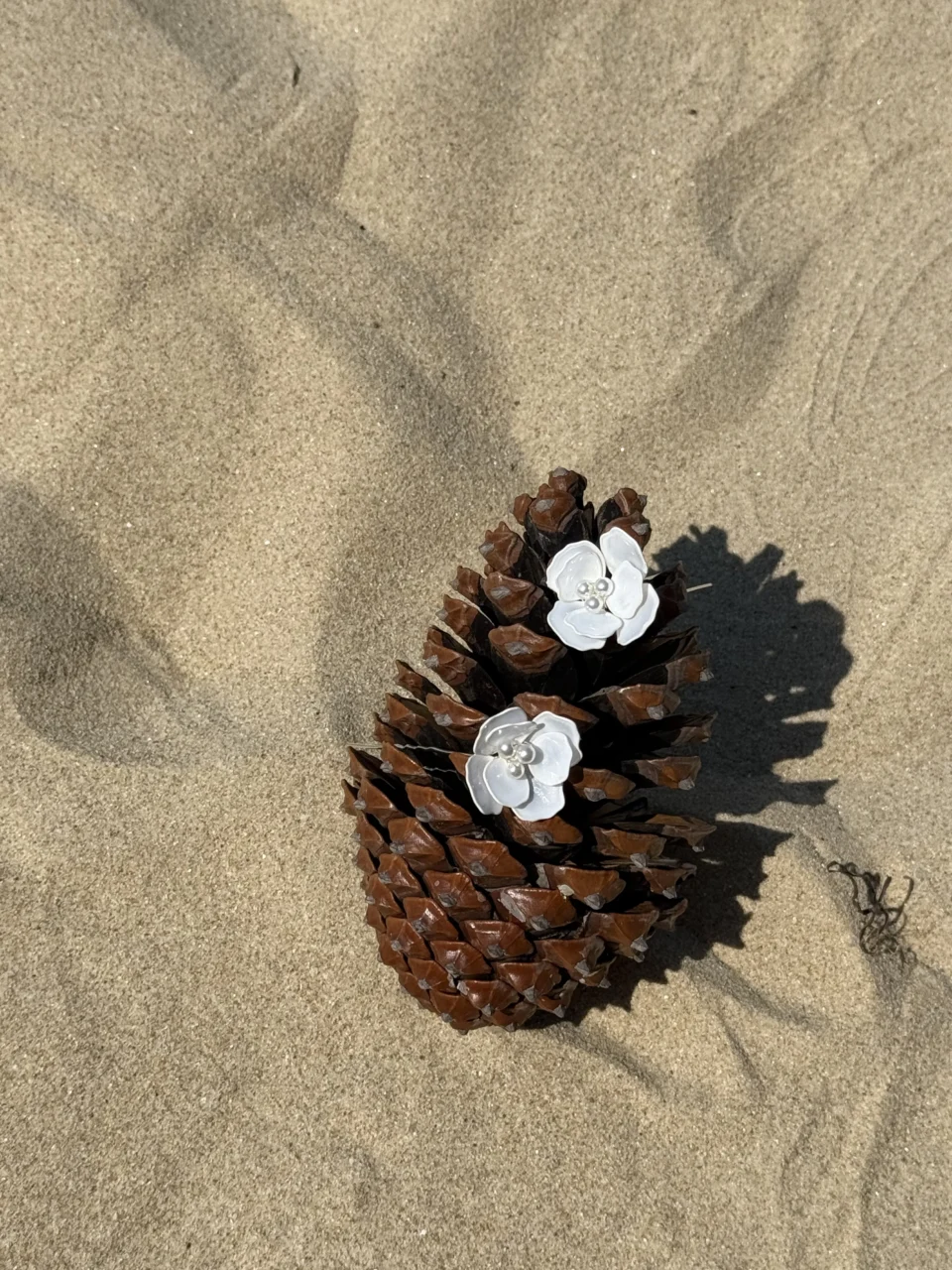 Комплект двойка фуркети с бели цветя и мини шел перли