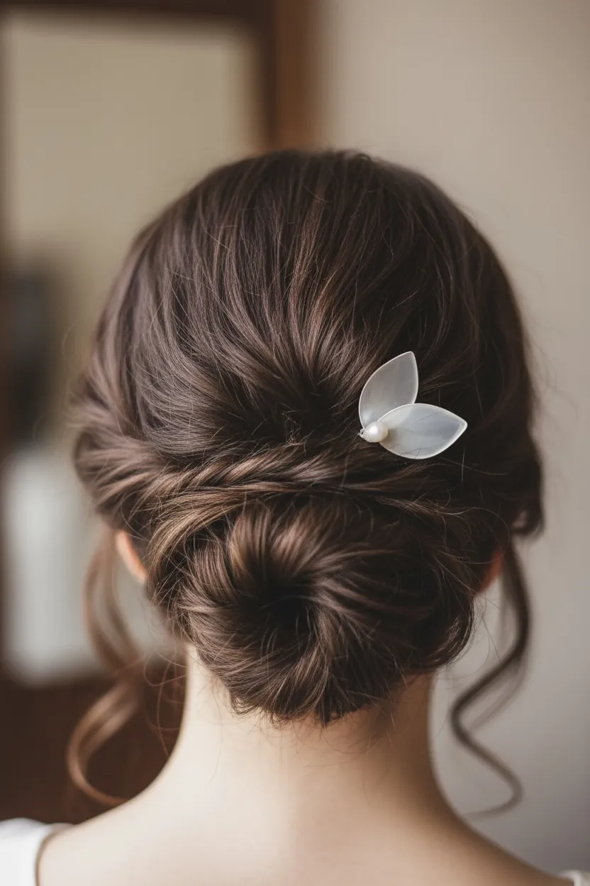 Мъжка бутониера/аксесоар за костюм с бяло цвете и шел перли