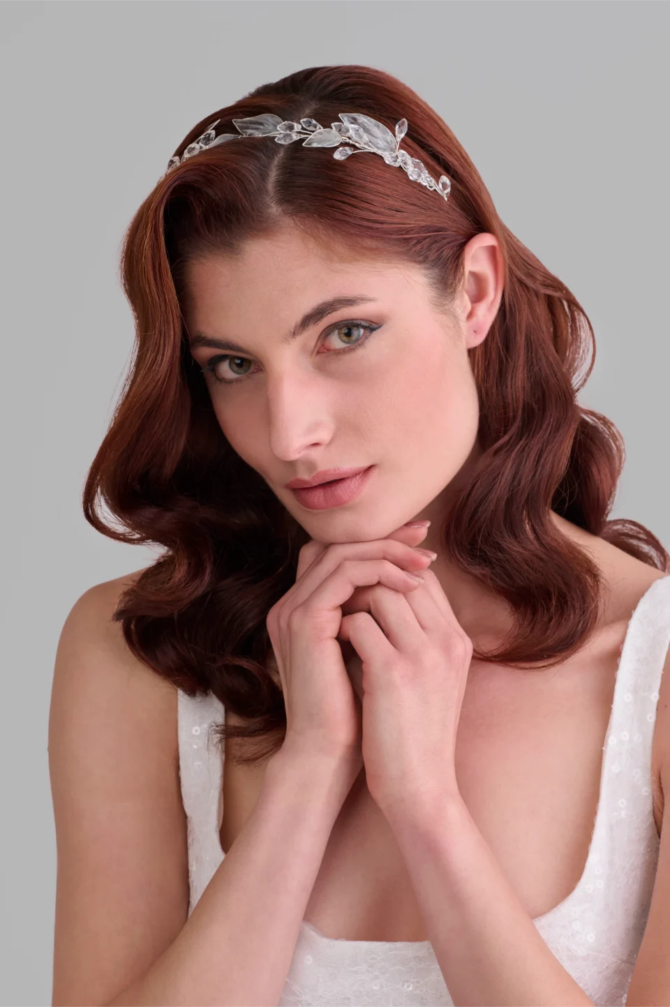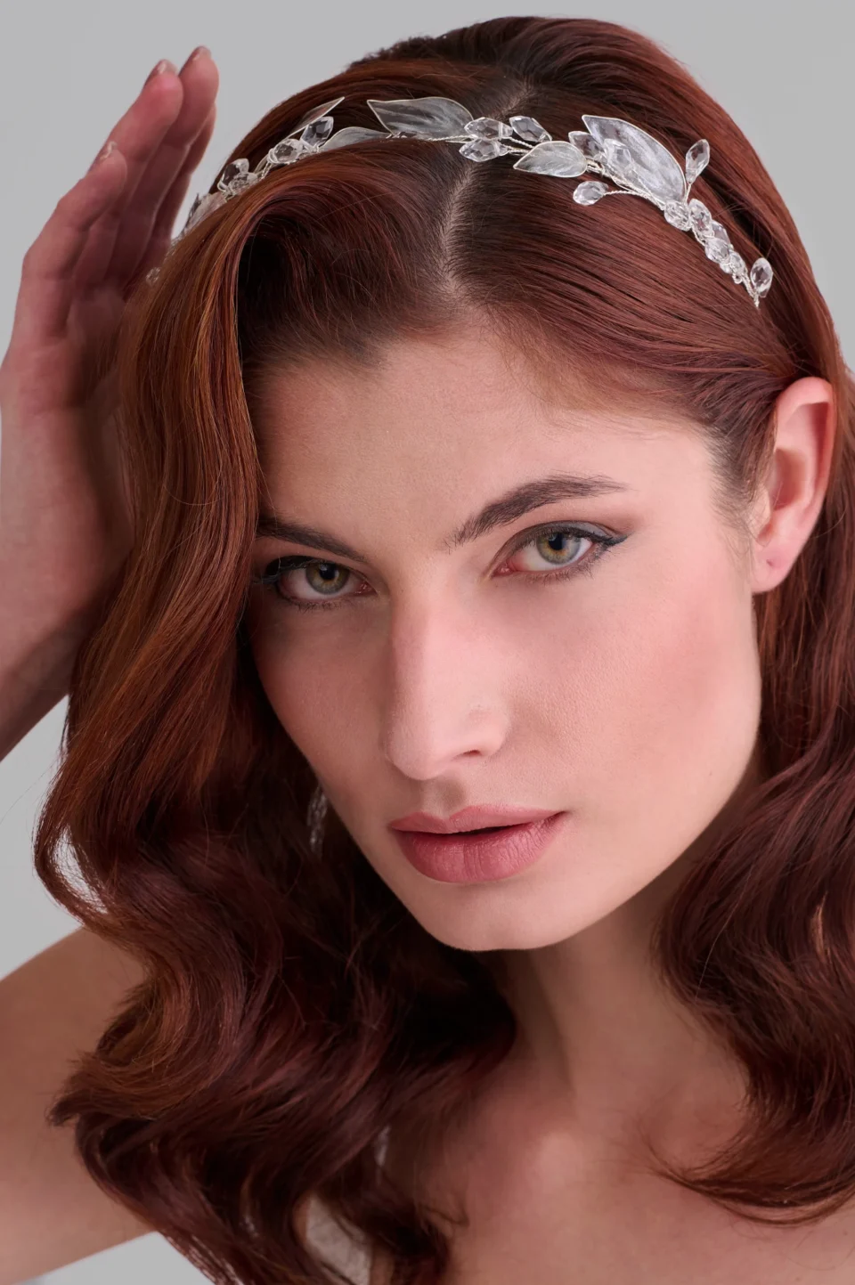 Диадема с прозрачни листа и кристали