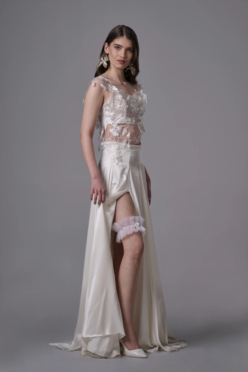 Асиметрично колие с цветя със златни пръски и кристална висулка „Флора Ауреа“