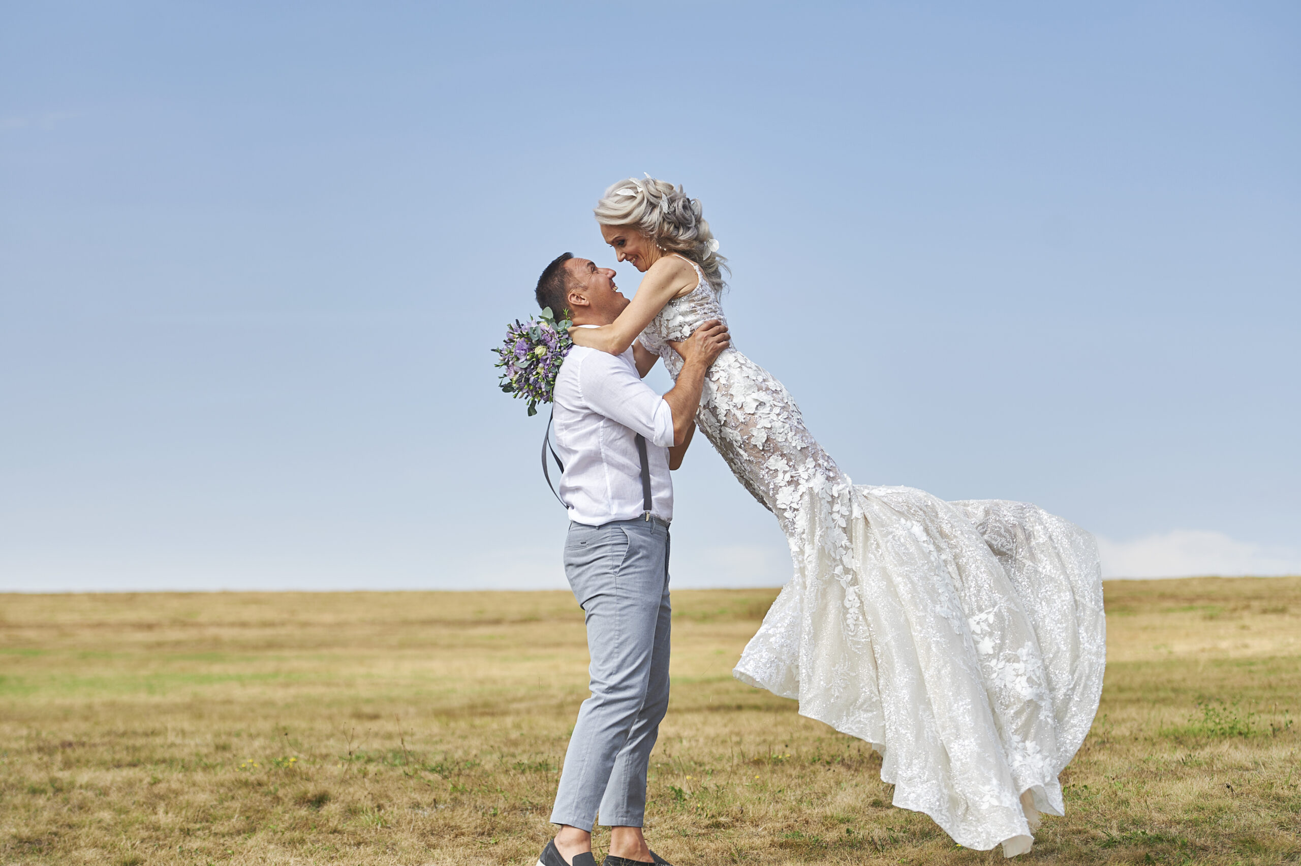 Мъжка бутониера/аксесоар за костюм с бяло цвете и шел перли