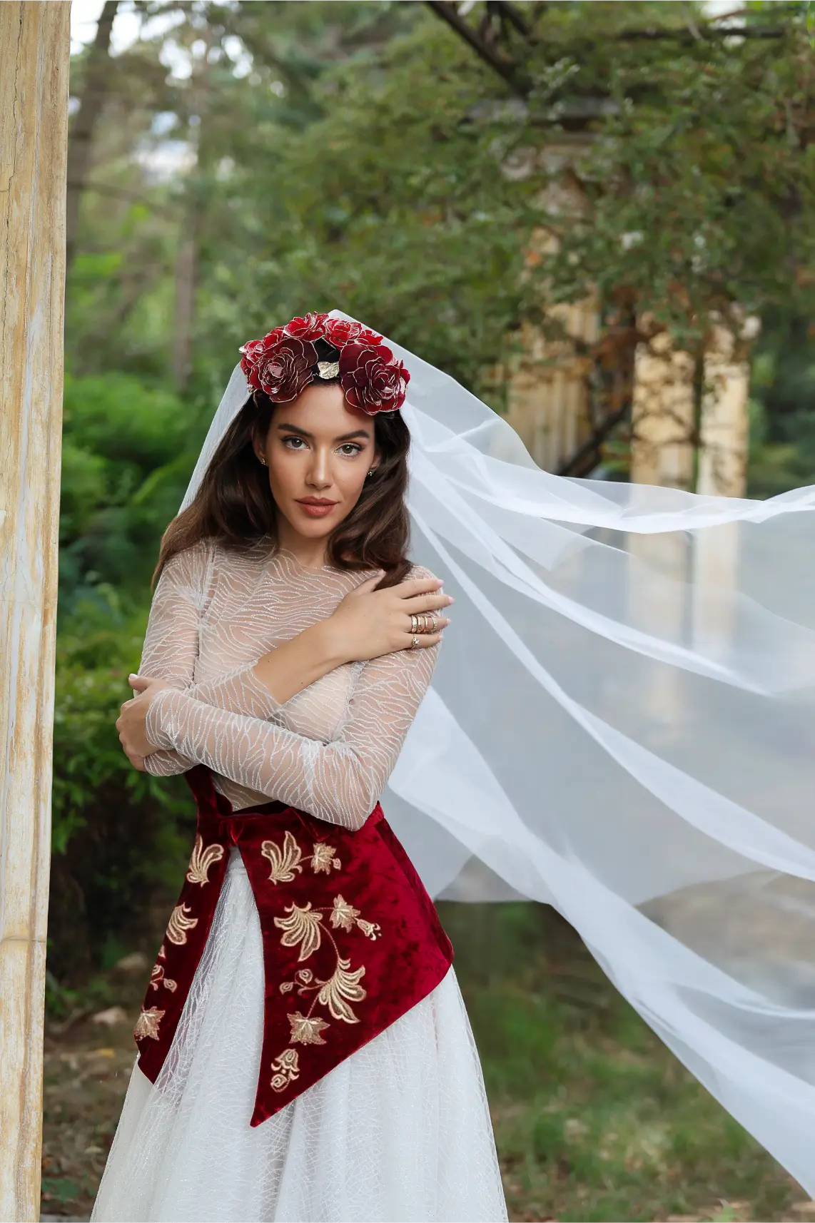 На корицата грее елегантната корона „Волена“ – драматична, емоционална и вдъхновяваща. Съчетание от червени рози, златни листа и приказна изработка, тя е дело на FE DE FЀ Jewelry и дизайнер Наталия Йолова.