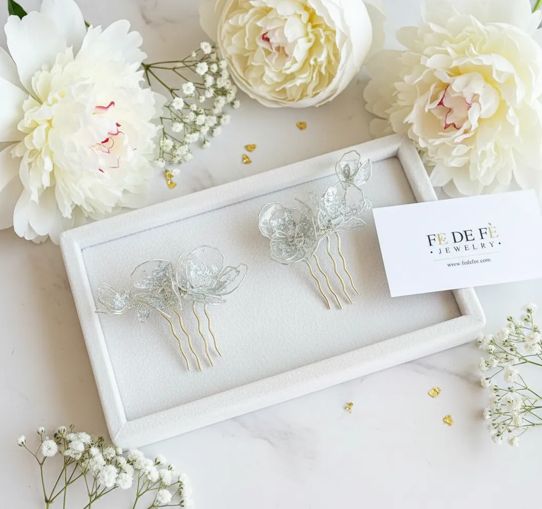 Добавете фино сияние към визията си с мини аксесоар, който улавя светлината и погледите. Перфектен избор за сватбени, вечерни и коктейлни визии.
