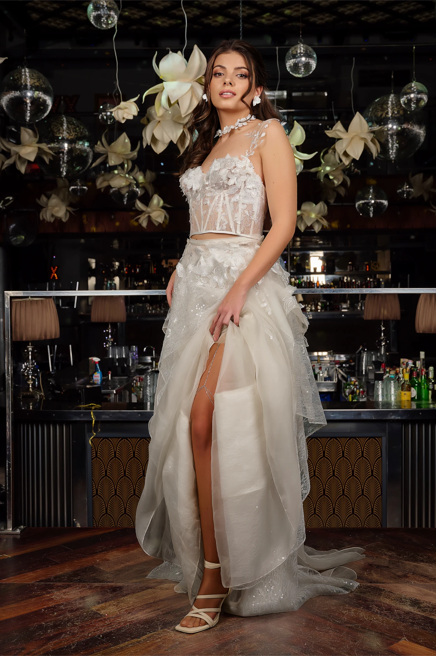 Този жартиер с верижка е съчетание на нежност и модерна елегантност. Неговият фин дизайн го прави деликатно и стилно допълнение към булчинска или официална визия. Стои изключително ефирно, като придава романтична нотка и изтънченост.