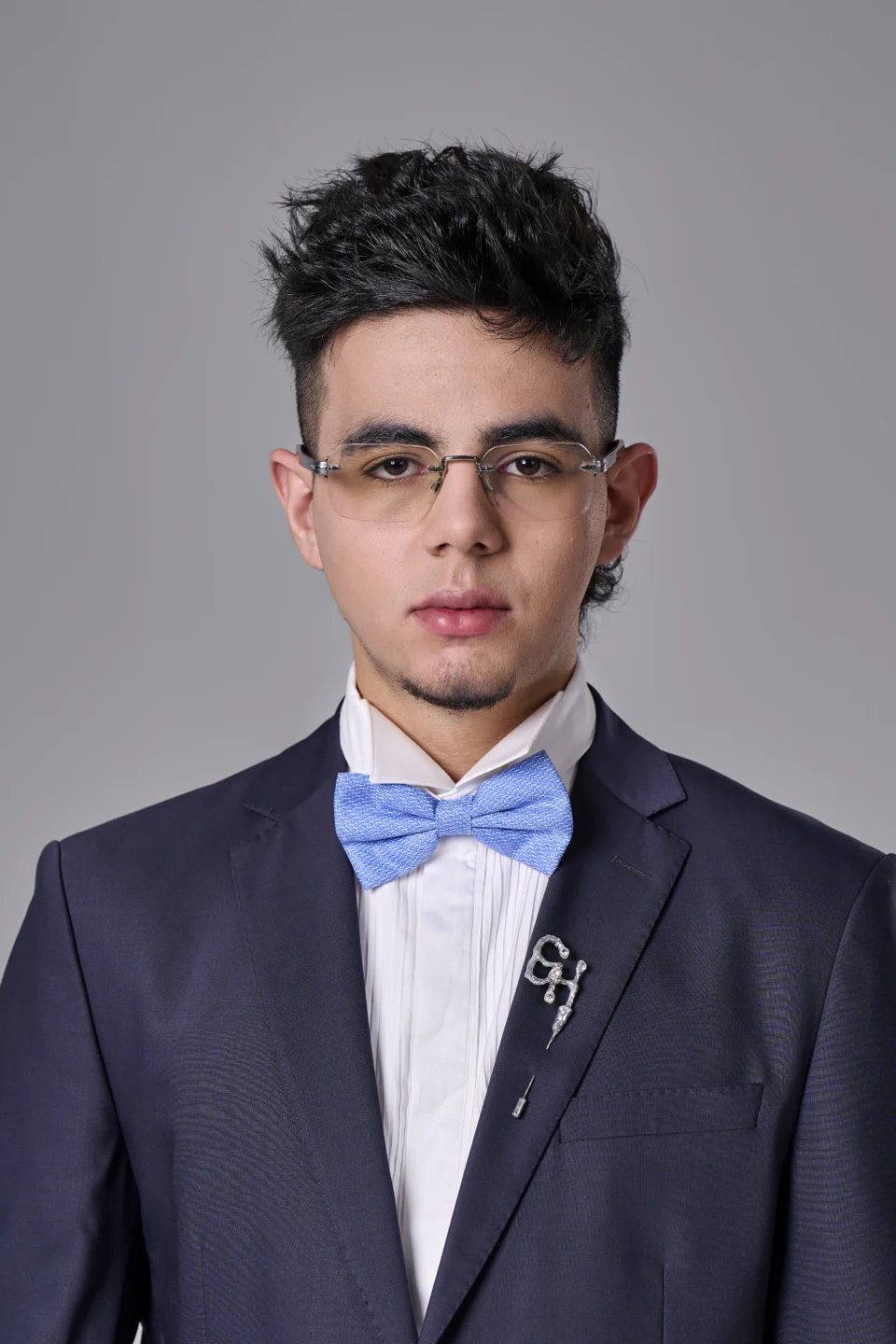 Мъжка бутониера с инициали в сребристо с цирконии