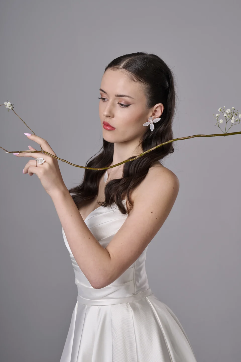 Булчински обеци с перла и бяло цвете „Луиза“
