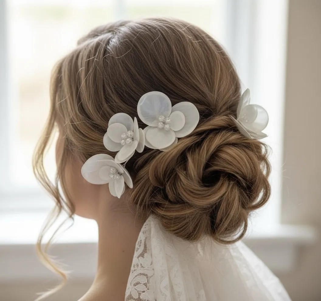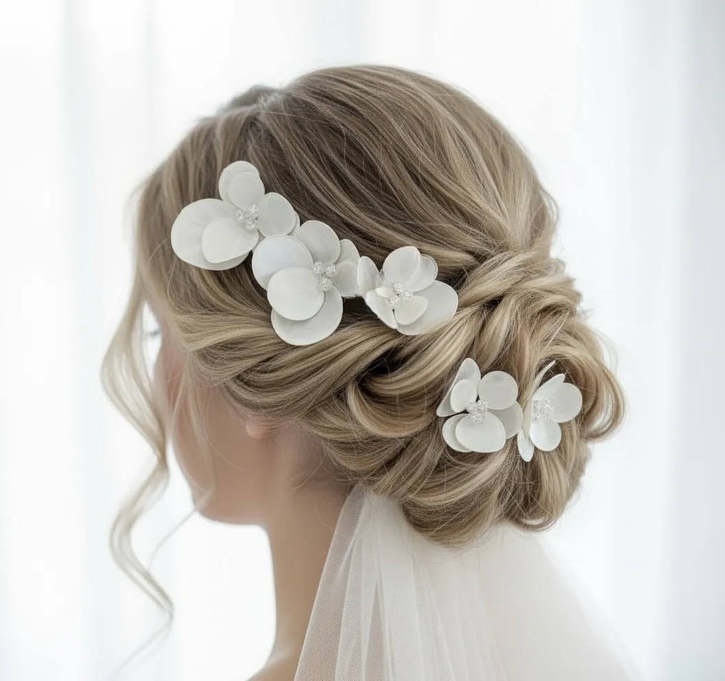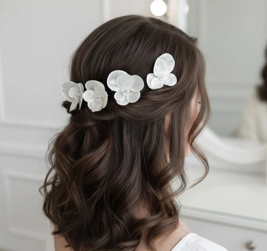 Фуркет с бело цвете и захарен кварц– елегантен аксесоар за коса
