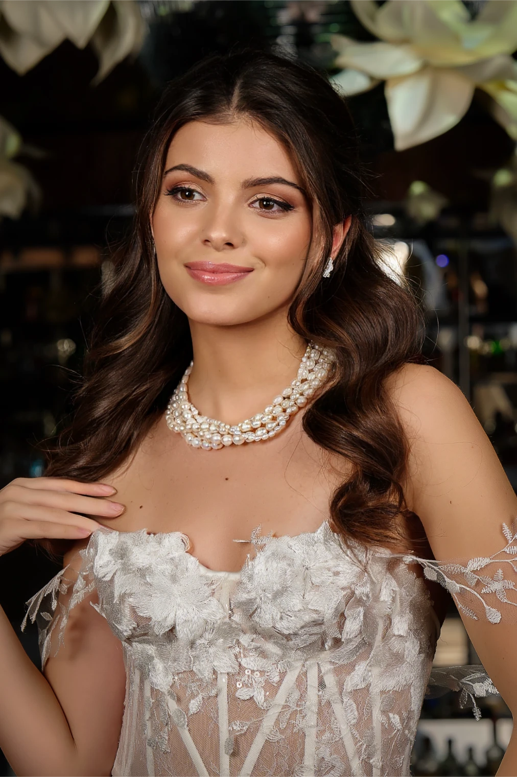 Това впечатляващо многоредово колие съчетава 5 реда перли с различни размери, създавайки динамична и аристократична визия. Всички метални елементи са изработени от сребро 925, придавайки лукс и издръжливост.