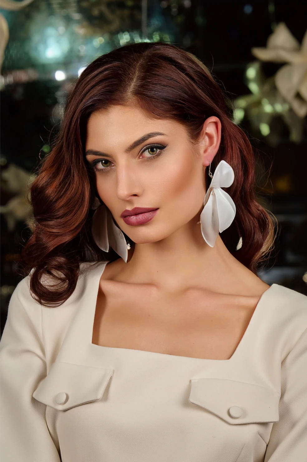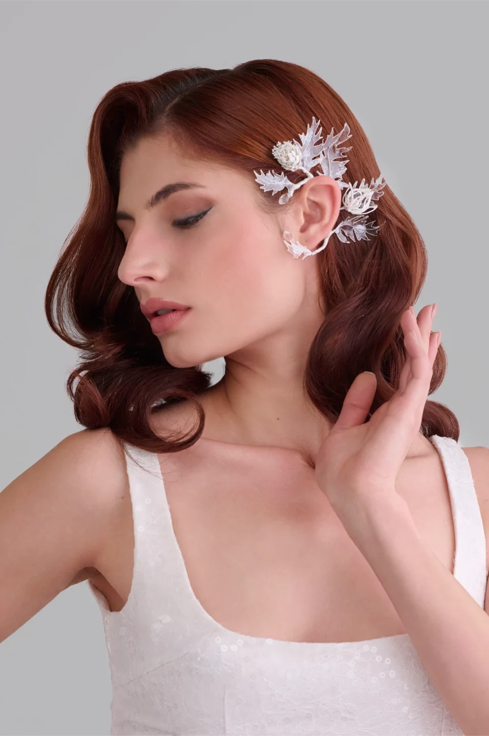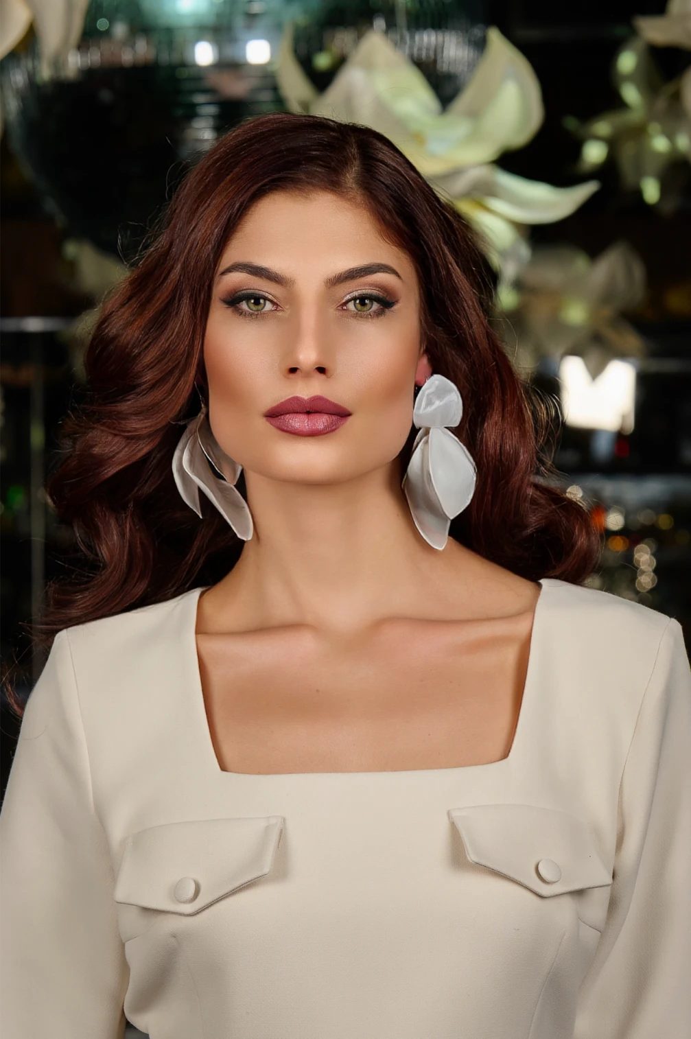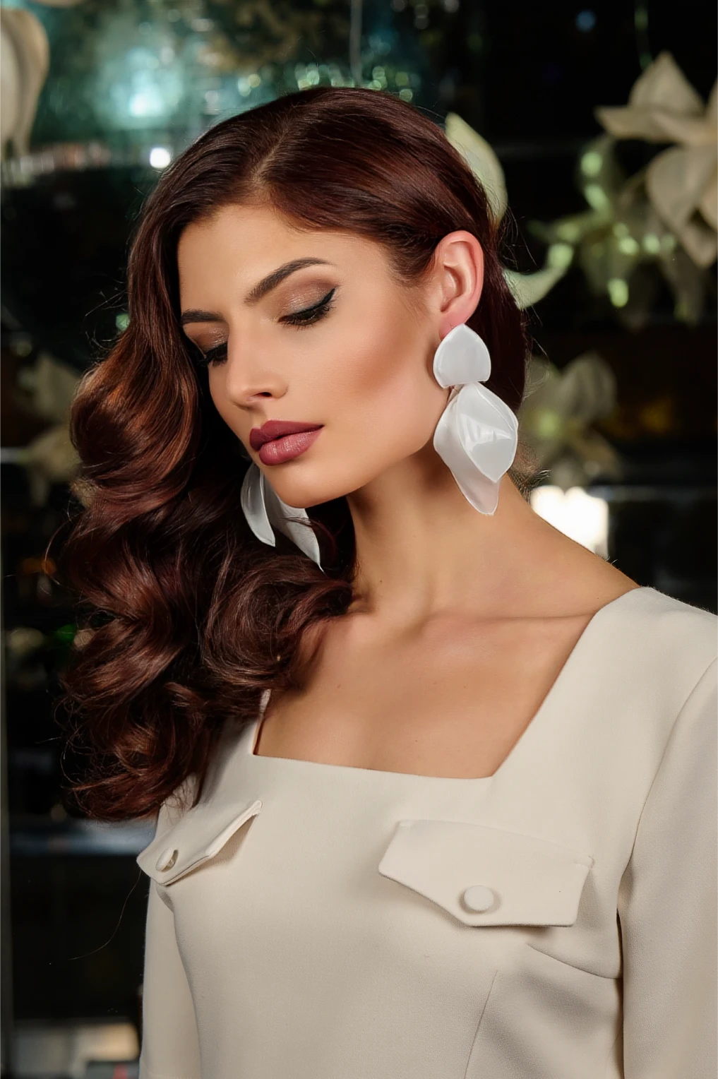 Тези уникални артистични обеци с дължина 13 см променят формата си в зависимост от ъгъла, под който се гледат. Отпред изглеждат като големи разцъфнали цветя, но при движение и завъртане разкриват форма, наподобяваща богомолка.